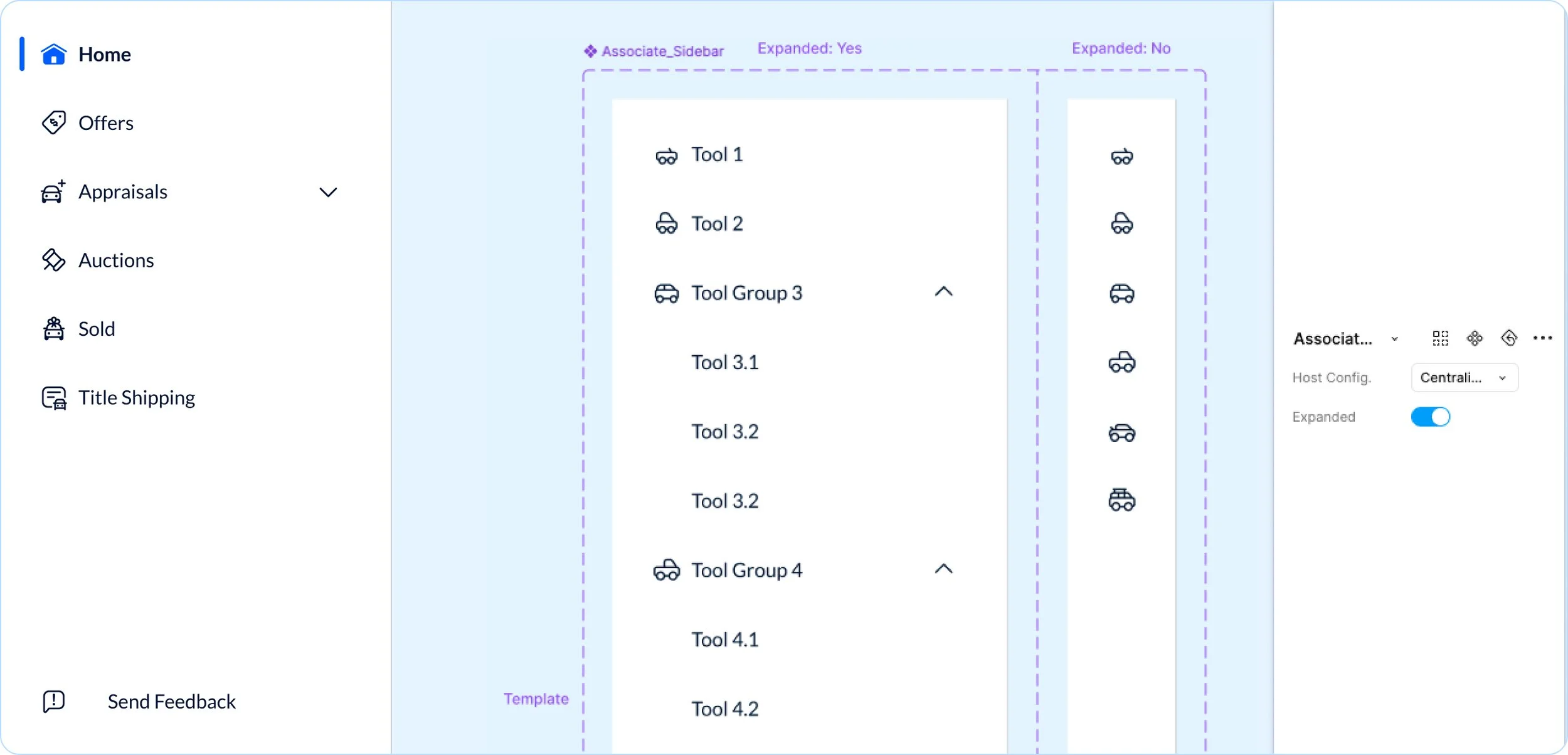 This example is from our Associate Facing design system and it is an arrangement of <SideBar> and <AppBar>.