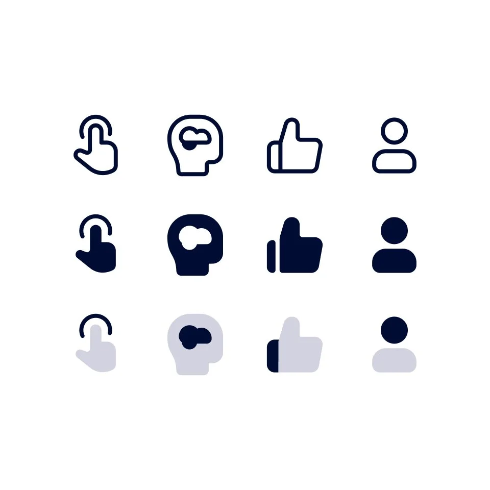 We developed a unique icon style rooted in our brand strategy that had flexibility built into its DNA. Each icon starts on a shared canvas and is built using simple shared principles. Icons are then simultaneously shared to the DAM for Marketing and a Figma component library for Product where they are pulled into a code repo. All icons are tagged with metadata to increase searchability.